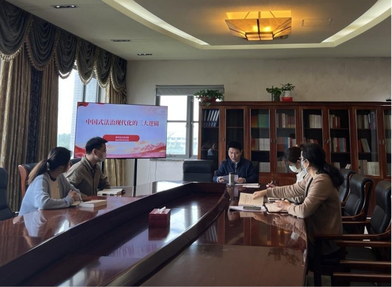 5月22日上午,研究生处党支部书记卫磊为支部全体党员讲授“中国式法治现代化的三大逻辑——深入学习习近平新时代中国特色社会主义思想专题摘编”专题党课。