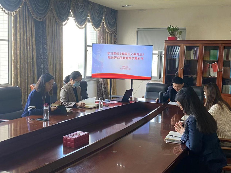 十四届全国人大常委会第六次会议于10月24日表决通过《中华人民共和国爱国主义教育法》,自2024年1月1日起施行。11月14日,研究生处开展专题学习,就学习贯彻《爱国主义教育法》、推进研究生教育高质量发展展开探讨。