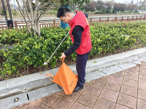 活动当天,所有参与者身着统一的志愿者工作服,手持垃圾袋和夹子等工具,分组前往千步泾河道旁进行垃圾清理,不仅清扫了观塘广场的落叶和纸片,还深入捡拾隐藏在草丛中的烟头、塑料袋等垃圾。