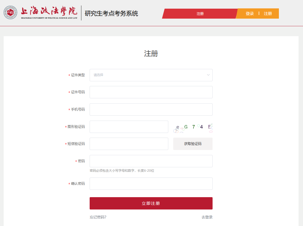 注册:首次使用本系统请先用本人身份证号和可接收验证码的手机号码进行注册,注册成功方可进行登录;