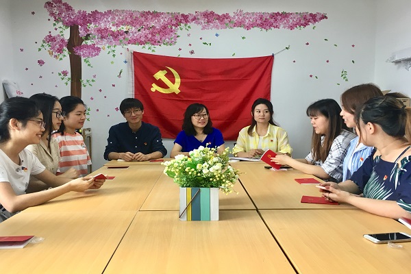 7月5日上午,语言文化学院党总支在28号楼社区活动室举行了新党员宣誓大会,语言文化学院党总支副书记周欣、语言文化学院学生党支部书记李洋、组织员赵倩莹、新发展党员出席本次大会。会议由赵倩莹主持。