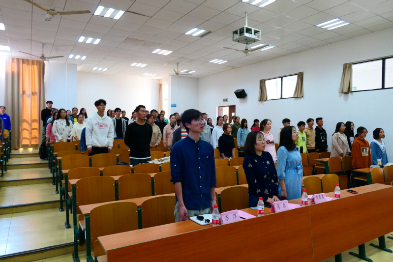 11月1日中午,语言文化学院分党校2019年学生党建理论培训班结业典礼在A8-101隆重举行。语言文化学院党总支副书记周欣、学院专职组织员尚媛媛、学生支部书记李洋及全体培训班学员出席会议。