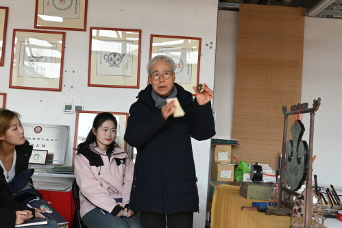 为进一步加强非物质文化遗产与教育实践的深度融合, 推动中华优秀传统文化传播与交流,12月28日下午,语言文化学院(国际交流学院)组织师生赴新利18官方客服与上海刻道书画院共建的大学生实践教学基地参观学习。上海刻道书画院非遗传承人胡川隆、学院党总支副书记魏洲阳、团委书记卫广麒及团委学生代表共同参加本次活动。