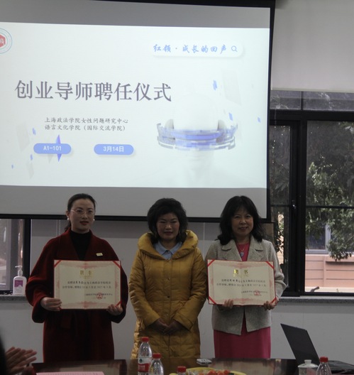 汤仙月为凯伟集团总经理吴冬苗、慧创资本合伙人周丽萍颁发“创业指导师”聘书。