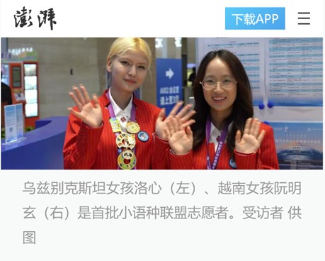 来自“一带一路”共建国家乌兹别克斯坦的留学生洛心,凭借对中、英、俄、乌兹别克四国语言文化的深刻理解与鲜活体验,接受央视新闻采访1次,澎湃新闻采访2次以及青春上海专访,以留学生视角讲述跨文化交流的温度与力量,成为进博会上亮眼的志愿者风采。