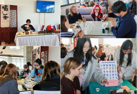 11月27日上午, 国际教育学院(筹)(继续教育学院)和语言文化学院(国际交流学院)顺利举办“中俄青年友谊茶会”。朴归茶道社指导老师、语言文化学院(国际交流学院)俄语教研室张晓玲副教授受邀为俄罗斯联邦总统国民经济和公共管理学院的学生做中国茶文化讲座。本次活动以中国茶文化为核心纽带,搭建起中俄青年交流互动的平台,以青年视角践行文化外交与民间外交理念,助力茶文化精准国际传播,让两国青年在茶香中拉近距离、在交流中增进理解、在互动中建立友谊。