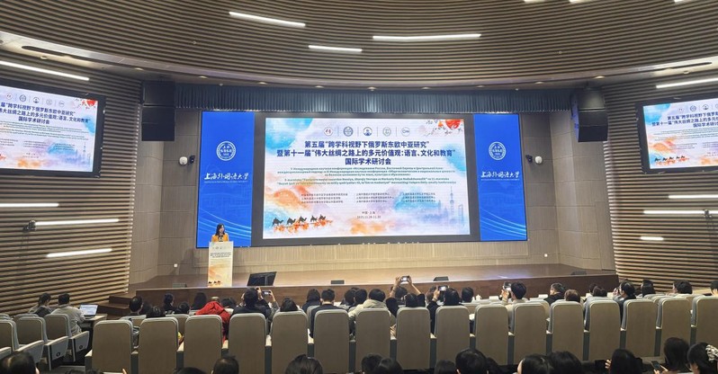 11月28日至30日,上海外国语大学成功举办第五届“跨学科视野下俄罗斯东欧中亚研究”暨第十一届“伟大丝绸之路上的多元价值观:语言、文化和教育”国际学术研讨会。会议汇聚了来自国内外的众多专家学者,围绕俄罗斯、东欧及中亚地区的政治、经济、文化、社会等多领域议题展开深入研讨,并聚焦丝绸之路沿线国家在语言、文化与教育方面的交流与合作。我校语言文化学院(国际交流学院)俄语专业副教授岳强与教师刘钰忻应邀参会,与海内外学者分享学术见解并进行研讨。