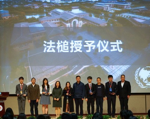 来自江苏警官学院、华东理工大学、华东政法大学、井冈山大学、上海对外经贸大学、上海商学院、西北工业大学明德学院、新利18官方客服的各高校代表团代表接受了与会嘉宾赠送的纪念品和徽章;接着与会嘉宾为各学术代表团授法槌。
