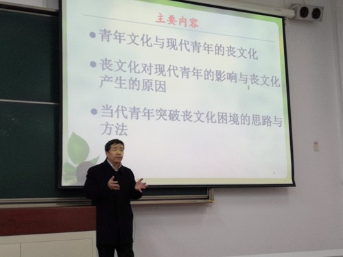 紧接着第二部分,讲到丧文化的形成原因及影响。张老师将丧文化下的青年分为两类,第一类是外在的丧,内在的自我抗争和奋斗;第二类是内在的丧,对未来的自我放弃。之后分析了丧文化产生的社会原因及青少年的心理因素。如,社会主流文化内涵的缺失,主流文化传播方式的模式化与说教化,青少年逃避现实,追求轻松愉快快速成功的心理等等。