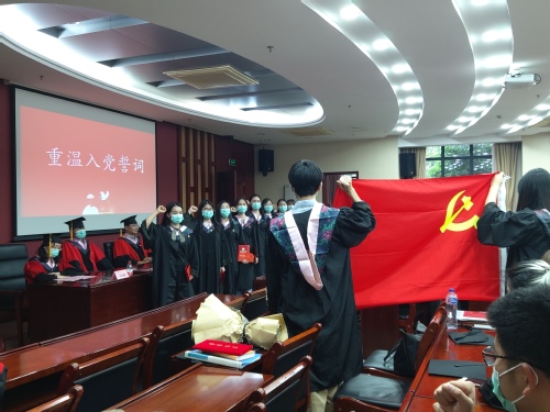 进行宣誓仪式,重温入党誓词,让毕业生党员们再接受一次心灵的洗礼,铭记庄严的承诺,心怀感恩去奋斗,带着温暖前行,以饱满的热情投身到工作岗位。