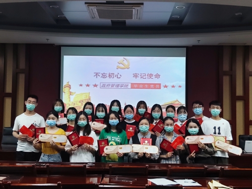 5月29日下午,政府管理学院采用线上线下双结合的方式举行2020届本科生毕业典礼暨学位授予仪式,上政第31-35学生党支部选派了10名毕业党员代表参加典礼,并于会上庄重宣誓,重温入党誓词,由上政第31学生党支部党员、荣获上海市优秀毕业生称号的杨鑫悦同志进行领誓。学院党政领导还为毕业生党员代表颁发“校园抗击疫情党员先锋”志愿者荣誉证书,并送上一份特殊的礼物——“初心印迹”卡,勉励其时刻牢记党员的身份与使命,深刻认识到作为一名上政人的责任与担当,对助力安全复学志愿服务中展现的无畏精神予以表彰。