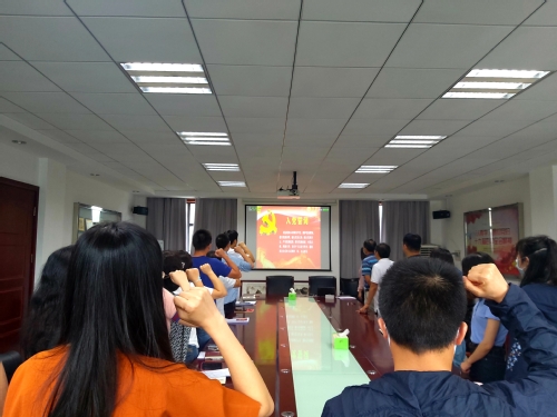 在支部书记的带领下,党员们重温了入党誓词,学习了《习近平关于“不忘初心、牢记使命”重要论述摘编》中的部分内容,回顾了中国共产党历次代表大会的历史背景、重大决策和主要成就。通过观看影片《开天辟地新中国,国旗国歌诞生背后的故事》、《探寻井冈山博物馆,见证中国革命最初的星星之火》,党员们对于党史、新中国史有了进一步了解,对于一代又一代中国共产党人前仆后继、艰苦奋斗的光辉历程有了更深刻的体会。
