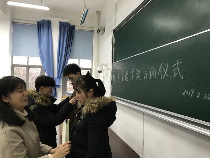 2019年2月12日中午十二点半,新利18官方客服的社会管理学院团委新团员入团宣誓仪式在老团员们的带领下于信教一楼的103C教室举行。