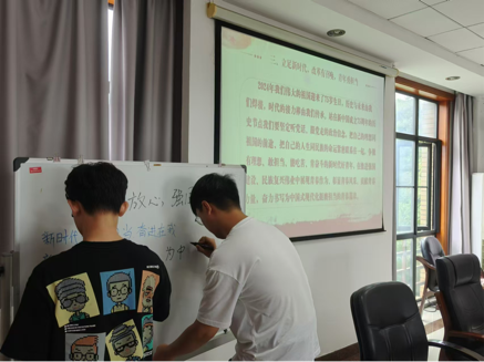 活动旨在加深党员对全面深化改革重要性的认识,激发青年学子的历史使命感。由张梅同志详细解读了《决定》内容,强调其在新征程中的指导意义;商璐璟同志则激励青年学子勇于担当,积极投身改革实践。通过视频展示改革成就与青年奋斗故事,进一步点燃了青年党员的热情与斗志。互动环节,支部成员纷纷在黑板留言表示,将把个人理想融入国家发展大局,争做有理想、敢担当、能吃苦、肯奋斗的新时代好青年,以实际行动践行“请党放心、强国有我”的青春誓言。