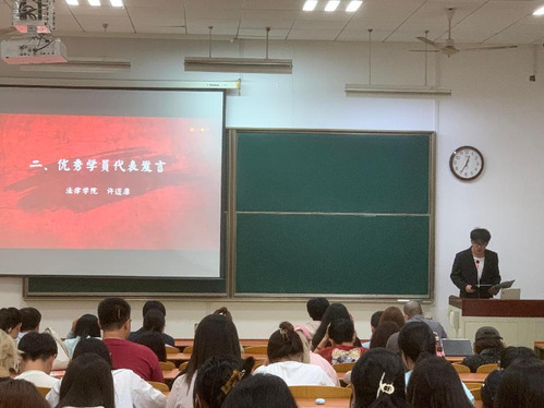 法律学院的学员许迈康作为优秀学员代表发言,他表示通过本次培训切实加深了对党的方针政策理解,号召大家坚持终身学习理念不断提升道德修养与理论素养,争做新时代有理想、有道德、有文化、有纪律的青年。