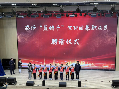 活动现场,禁毒宣传氛围浓厚,大中小学学生齐聚一堂,共同探讨禁毒工作新思路、新举措。在聘书颁发环节,政府管理学院副院长谈谭为崧泽“蓝鸽子”宣讲团兼职成员颁发聘书。这一举措不仅深化了大中小学思政课一体化建设,更搭建了校地协同开展禁毒宣传的坚实平台,为后续常态化禁毒宣讲注入了高校力量。