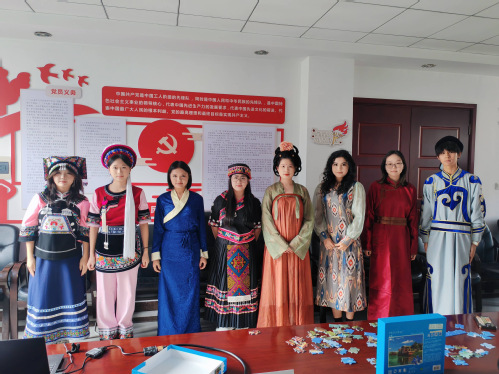 知识竞答环节气氛热烈,题目涵盖各民族历史渊源、传统节日、文化遗产等内容,大家踊跃抢答、相互补充,在轻松氛围中深化了对民族知识的认知。趣味实践区更是人头攒动,串串珠活动中,大家巧手穿引,将对民族团结的期盼融入晶莹饰品;画小油纸伞环节,各族学子共同勾勒民族元素与吉祥图案,让非遗技艺在创意中传承;红色党性地址拼图则将井天安门、中共一大、红船等革命圣地融入游戏,在协作解谜中厚植红色基因,强化党性修养。