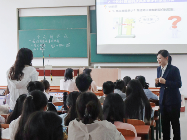 本次公开课内容为税法中“个人所得税”模块,课前,李霞通过“学习通”问卷调研学生对个人所得税的学情认知,以热点问题带入思考。随后,通过微视频介绍引发学生思考的问题,采用逐步分解难点的教学方法,传授税法实务专业知识,启发学生深度思考。最后通过让学生谈对偷逃税案例和个税多退少补事实的看法,潜移默化中对学生实现价值引领。