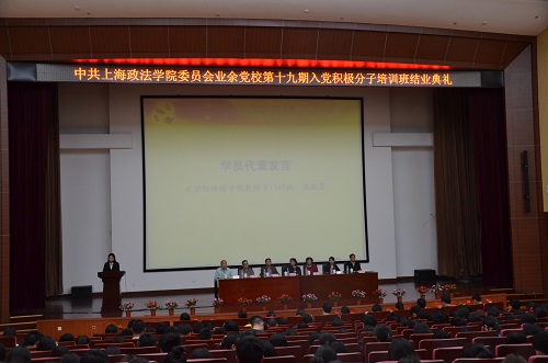 5月12日下午,学校党委业余党校在天马讲堂举行第十九期入党积极分子培训班结业典礼。党委组织部、宣传部、学工办等部门领导、各学院分管学生工作的领导、学生党建工作督导员和本期培训班全体学员参加了此次典礼。