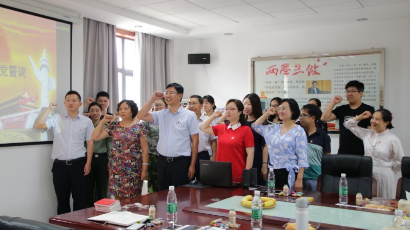 时值七一前夕,建党97周年之际,与会党员佩戴党徽、面向党旗,重温了入党誓词,在这个共产党人的节日里,掷地有声的誓词提醒大家不忘初心、继续前行。重温入党誓词后,与会人员观看了短片《共产党宣言的味道》以及《马克思是对的》系列第一集《你好,马克思》,视频短片既有理论深度、又有实践温度,从视频短片里可以看到,不管是教授学者还是青年学子,他们的言语中无不浸润着对共产主义理想不断追求的高尚情怀。