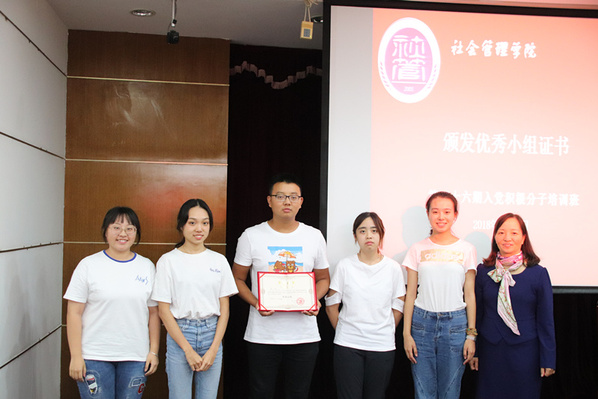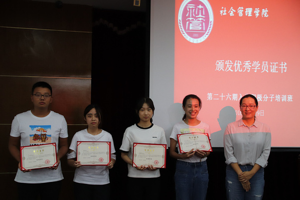 随后,谢一泓为入党积极分子代表颁发结业证书;陈娜为优秀学员颁发荣誉证书;连淑芳为优秀小组颁发荣誉证书。