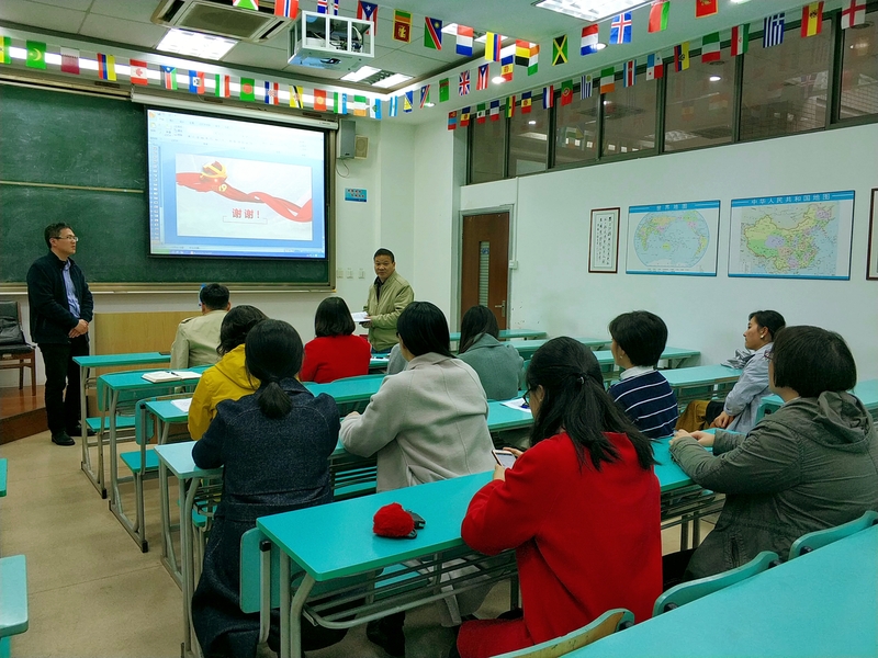 11月15日下午,国际交流学院、国际交流处教工党支部在庸夫楼210开展党课学习,市委党校万里鹏老师作题为《习近平新时代中国特色社会主义思想的理论体系和精神实质》讲座。讲座由国际交流学院党总支书记欧阳美和教授主持。