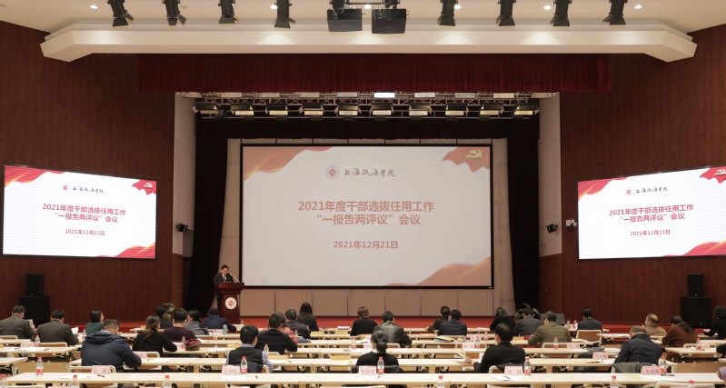 12月21日下午,学校2021年度干部选拔任用工作“一报告两评议”会议在上合基地207会议室召开。学校党政领导班子成员、两委委员、各部门(单位)主要负责人、党外人士代表、离退休代表、学生代表共计50余人参加会议。会议由校党委副书记、校长刘晓红主持。