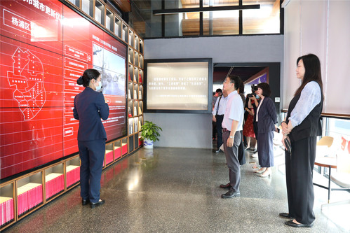 在杨浦滨江人民城市建设规划展示馆,大家通过人性化、数字化、艺术化、集约化陈展技术,认真学习“人民城市”理念的理论渊源、丰富内涵、时代价值与上海实践;参观秀带直播间,了解杨浦滨江的总体规划、发展历程与建设成果;参观上海旧区改造三十年主题展,立体感悟习近平总书记关于“人民城市”理念的深刻内涵。