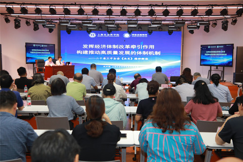 沈开艳围绕国有经济与民营经济发展、新质生产力与实体经济高质量发展,结合宏观治理体系和城乡融合发展、高水平对外开放等,详细解读了党的二十届三中全会提出的市场经济体制改革的核心内容。整场报告高屋建瓴、深入浅出,对学校广大干部深入学习领会党的二十届三中全会精神具有重要的指导和启发意义。